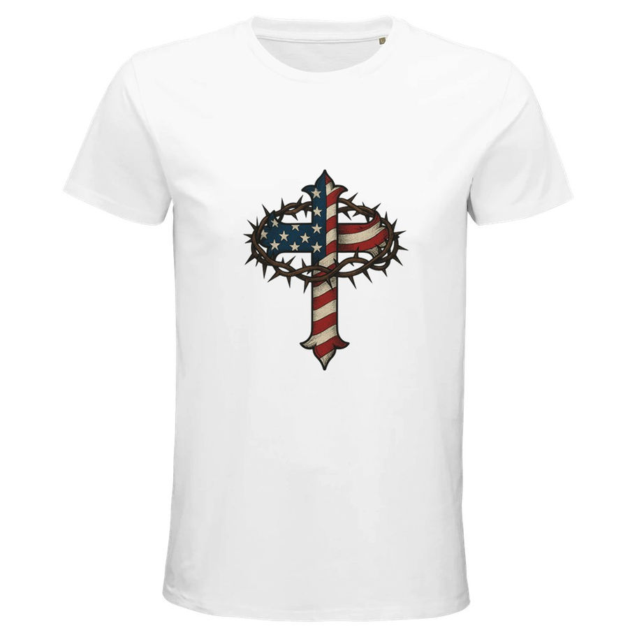 America First T-Shirt – Cross with Crown of Thorns Design, Organic Cotton